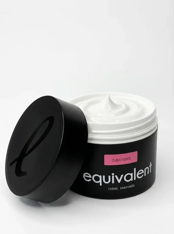 Элегантная минималистичная упаковка подчеркивает премиальный характер продукта и делает крем Equivalent стильным элементом ухода и идеальным вариантом подарка на праздники — для себя, подруги или близкого человека. Equivalent Dubai Vibes — это больше, чем просто крем для тела, это парфюмированный уход с атмосферой восточной роскоши, который дарит коже питание, глубокое увлажнение и стойкий аромат.