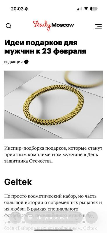 Сайт о развлечениях и городской жизни Москвы DailyMoscow.ru с ежемесячной аудиторией 100 тысяч человек опубликовал 20 февраля 2026 года подборку «Идеи подарков для мужчин к 23 февраля». В этом материале, призванном помочь с выбором приятного комплимента для мужчины в День защитника Отечества, была представлена туалетная вода EQUIVALENT H019.