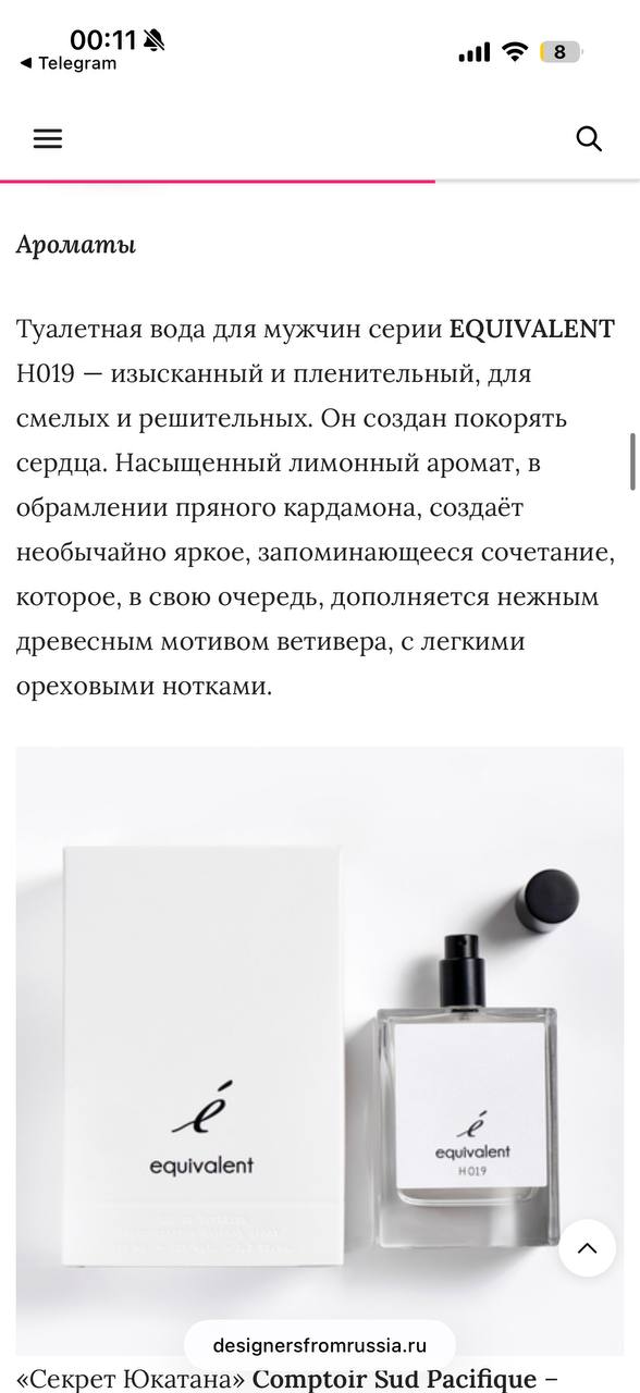DesignersFromRussia.ru включил аромат H019 от EQUIVALENT в подборку бьюти-подарков к 23 февраля