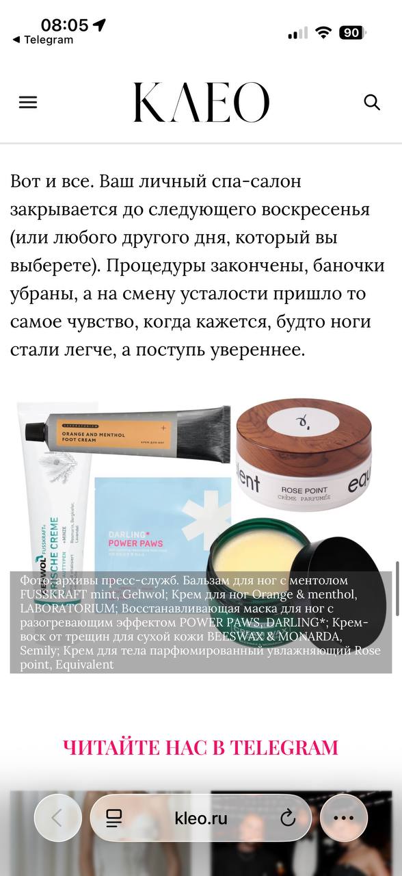 Женский сайт Kleo.ru с ежемесячной аудиторией 210 тысяч человек опубликовал экспертную подборку средств и методик для ухода за собой в домашних условиях. В статье «Домашние процедуры с эффектом салона» был представлен Парфюмированный крем от бренда EQUIVALENT как ключевой продукт для создания атмосферы роскошного спа-ритуала, не выходя из дома.