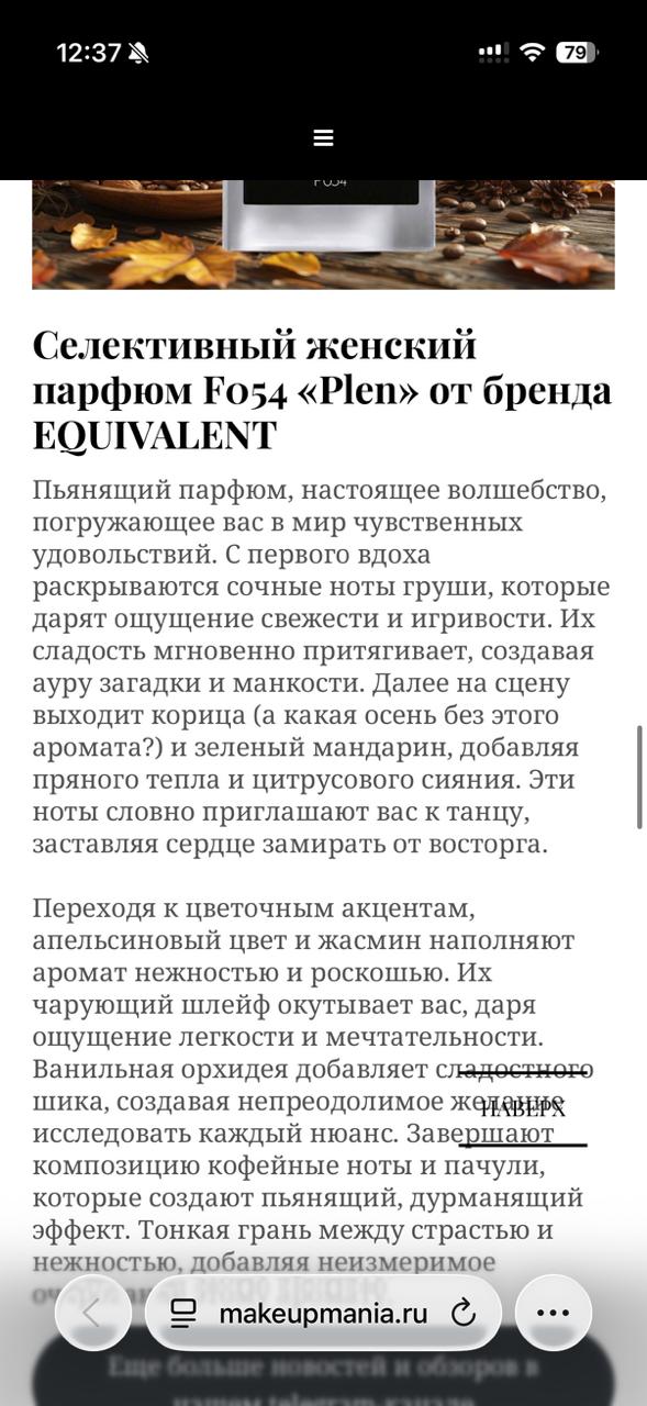 MakeupMania включил Equivalent F054 «Plen» в подборку осенних ароматов