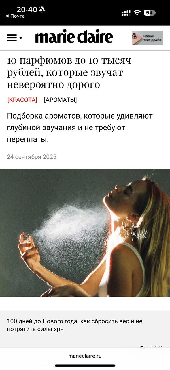 Marie Claire раскрывает секреты роскоши: Equivalent F054 – в десятке лучших парфюмов до 10 тысяч, звучащих на миллион!